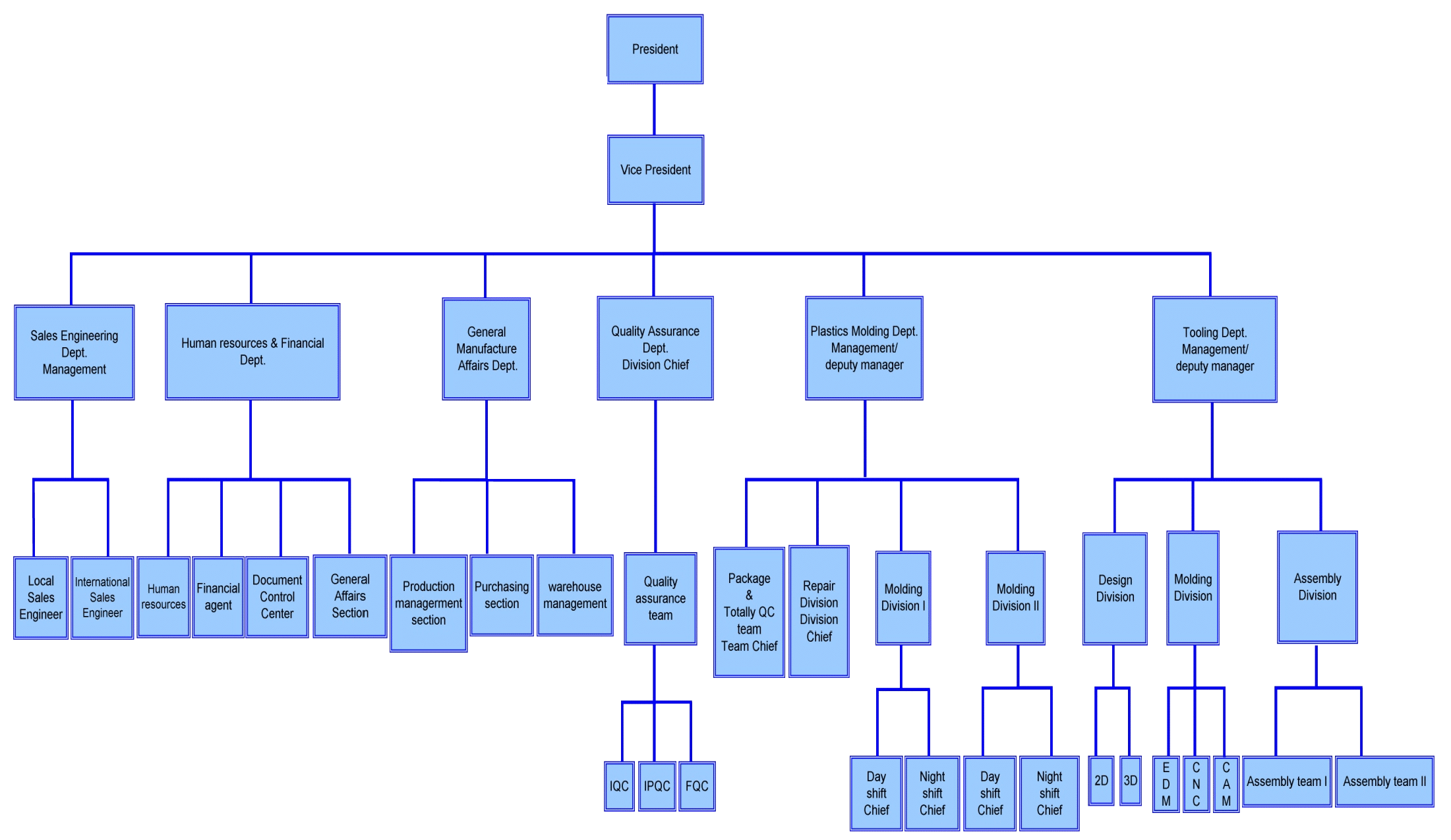 Produce precision molds and high standard products in the clean, tidy, orderliness, and high quality environment. |